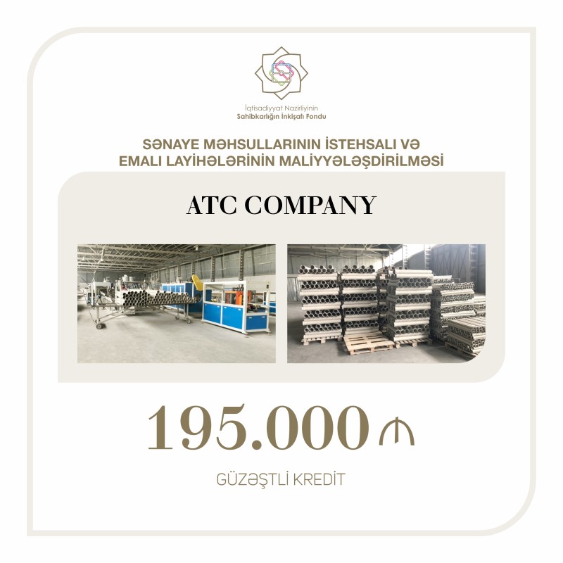 Sahibkarlığın İnkişafı Fondu tərəfindən "ATC Company" MMC-yə 195 min manat güzəştli kredit verilib.
