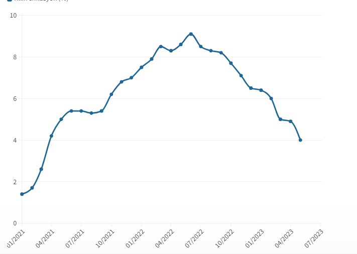 May ayında ABŞ-da inflyasiya yavaşlayıb. Bu vəziyyət, FED-in faiz artırmağı dayandırmasına şərait yaradır. ABŞ-da illik inflyasiya 4,9%-dən 4%-ə düşüb (ötən ilin may ayı ilə müqayisədə), bu, 2021-ci ilin martından bəri ən aşağı səviyyədir.