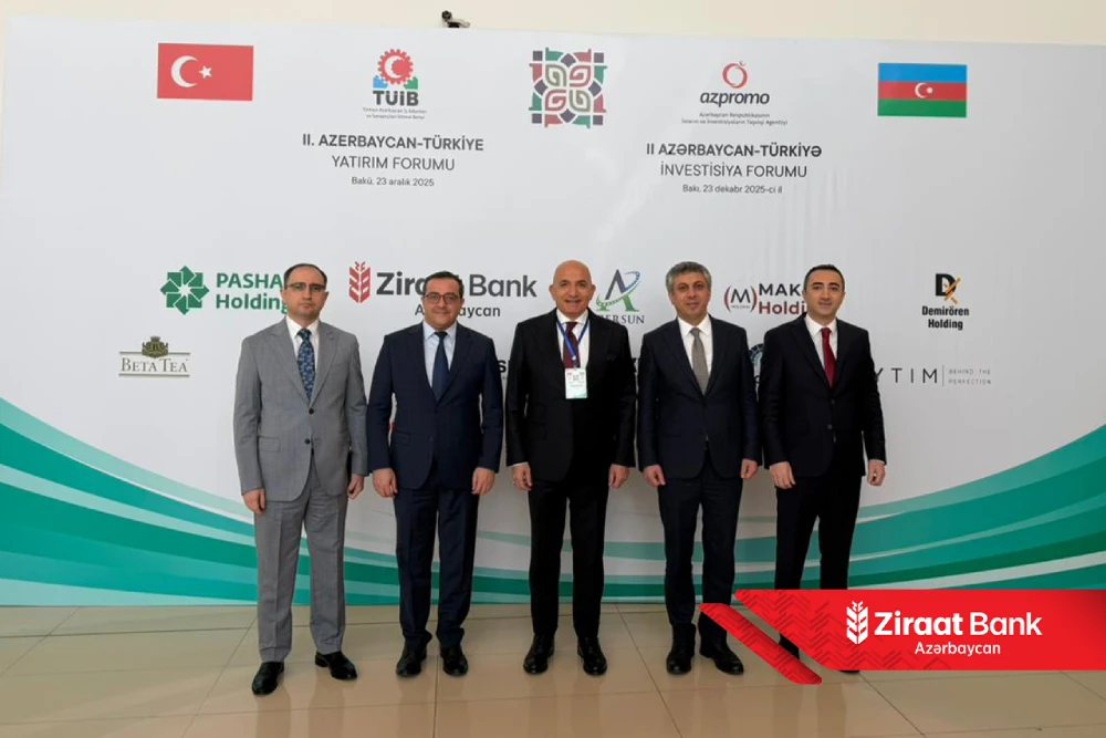 (®) 23 dekabr 2025-ci il tarixində Heydər Əliyev Mərkəzində keçirilən II Azərbaycan–Türkiyə İnvestisiya Forumu Azərbaycan və Türkiyə arasında iqtisadi əməkdaşlığın dərinləşdirilməsi, investisiya mühitinin inkişafı və biznes əlaqələrinin genişləndirilməsi baxımından mühüm platforma olub. Forumun baş sponsorlarımdan biri qismində çıxış edən Ziraat Bank Azərbaycan, tədbirdə maliyyə sektorunun investisiya proseslərindəki strateji rolunu ön plana çıxarıb.