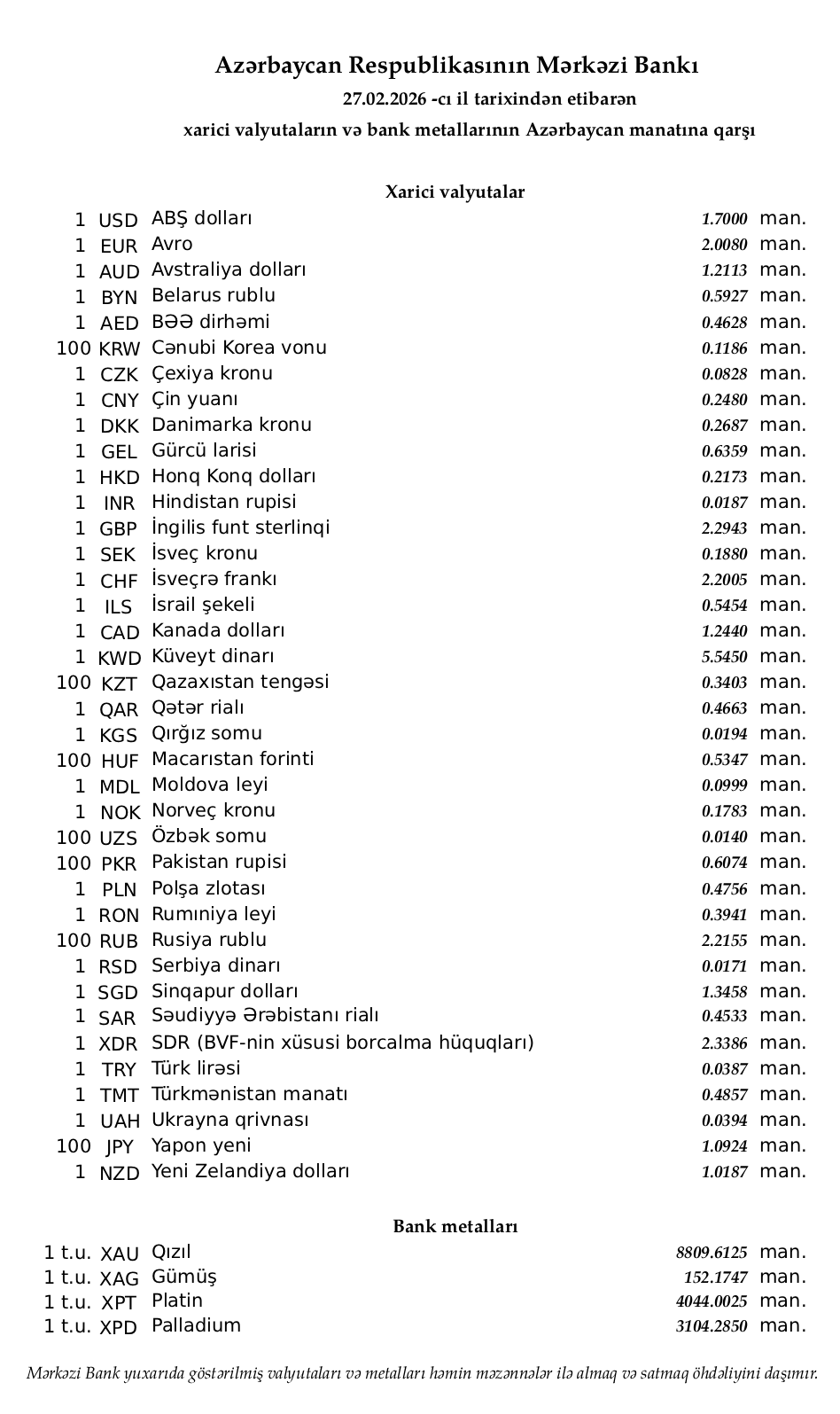 27.02.2026 tarixindən etibarən