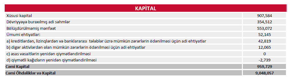 Hesabat dövründə mümkün zərərlər üçün yaradılan məqsədli ehtiyatlara ayırmalar da azalıb. 2026-cı ilin ilk rübündə bank bu məqsədlə 4 milyon 570 min manat ayırıb. 2025-ci ilin eyni dövründə isə ehtiyat ayırmaları 5 milyon 138 min manat təşkil edirdi. Bu isə 568 min manat və ya 11,1 % azalma deməkdir və kredit portfelində risklərin stabil olduğunu göstərir.