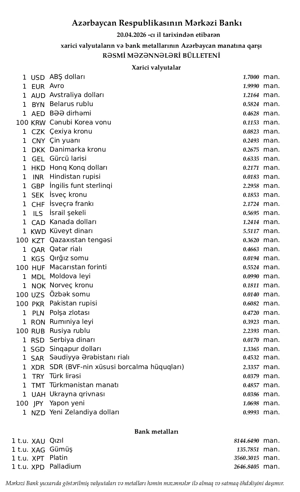 Dolların sabah üçün rəsmi məzənnəsi müəyyən olunub
