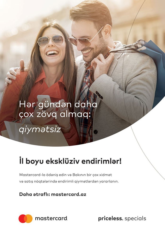 “Priceless Specials” platforması “Mastercard” kartlarına sahib olmağın üstünlüklərindən biridir. Bu proqramın kiçik sürprizləri sayəsində kart sahibləri üçün unikal təcrübələr, xüsusi macəralar, alış-veriş və iaşə obyektlərində imtiyazlar, ən yaxşı şou və idman tədbirləri, habelə ən keyfiyyətli hotel və gəzinti təcrübələri daha da özəl olacaq.