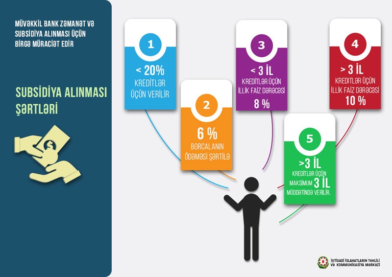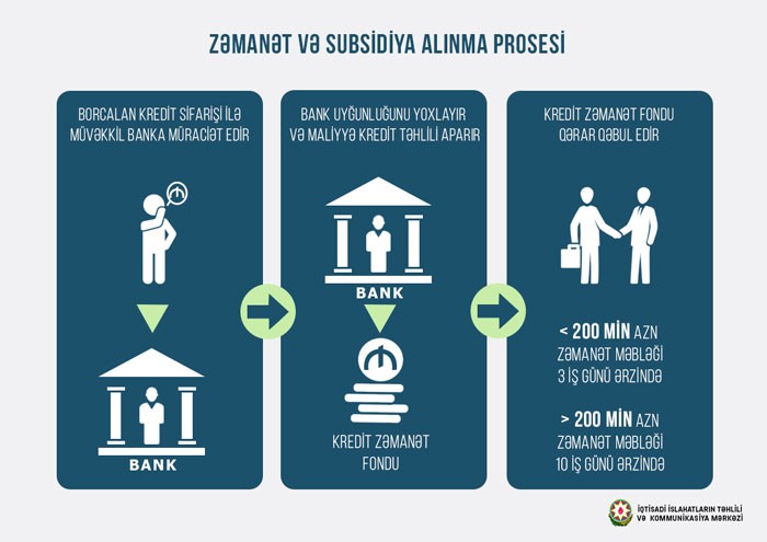 Fərmanı daha aydın şəkildə anlamaq və təqdim etmək üçün İqtisadi İslahatların Təhlili və Kommunikasiya Mərkəzi kreditlərə zəmanət və subsidiyalar verilməsi qaydaları ilə bağlı bir neçə infoqrafika hazırlayib.