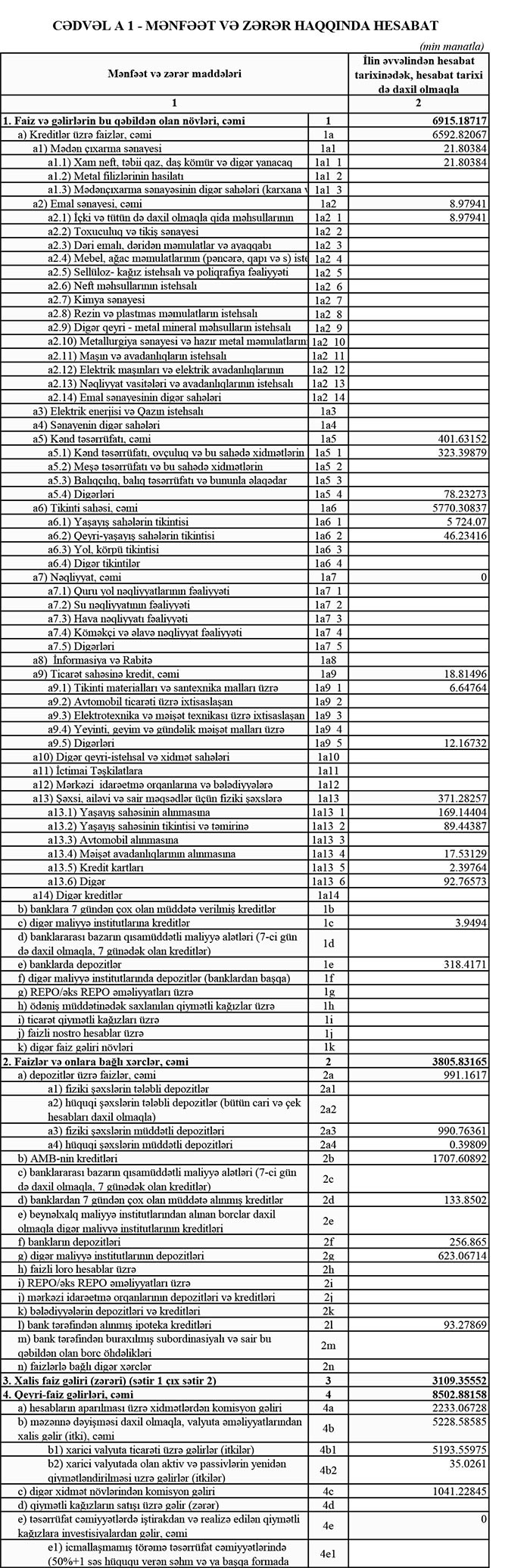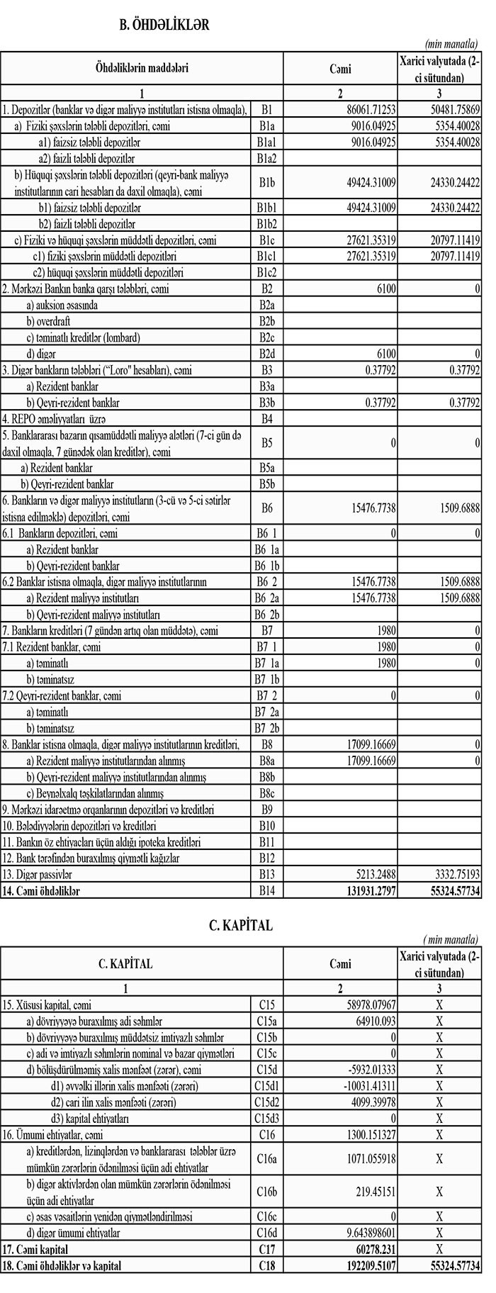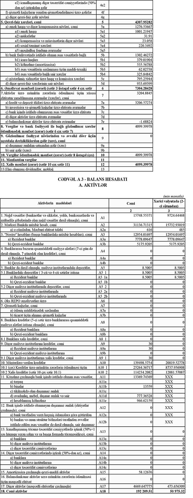Xərclər çıxıldıqdan sonar Bankın 7 milyon 304 min manat əməliyyat mənfəəti qalıb. Əməliyyat mənfəətinin 3 milyon 204 min manatı aktivlər üzrə mümkün zərərlərin ödənilməsi üçün xüsusi ehtiyatın yaradılmasına ayırılıb.