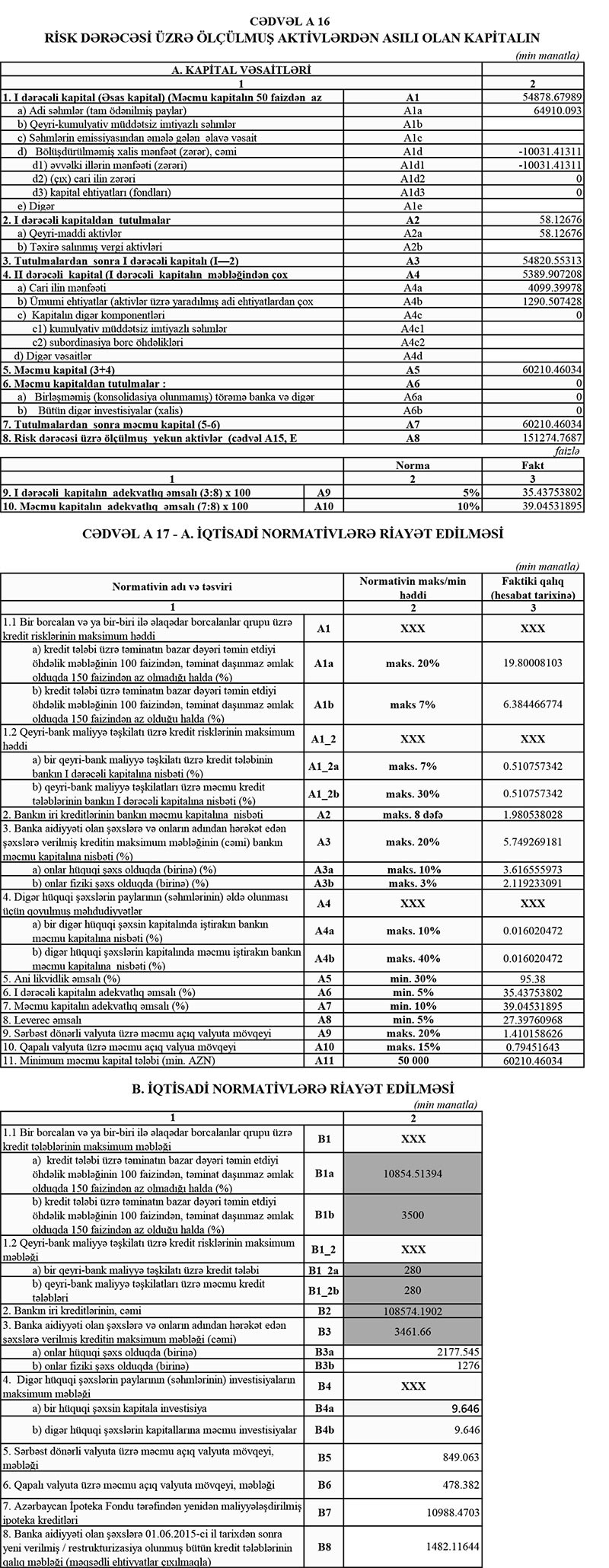 2016-cı ildə Bank 5 milyon 705 min manat faiz, 2 milyon 746 min manat qeyri-faiz gəliri əldə etmişdi. Lakin ehtiyatlara böyük məbləğdə ayırmaya görə Bank ili zərər ilə başa vurmuşdu.