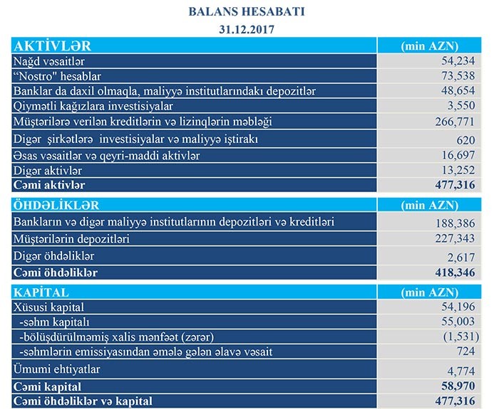 Bank 2015-cı ildə 1 milyon 132 min manat zərər açıqlamışdı.