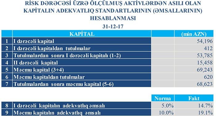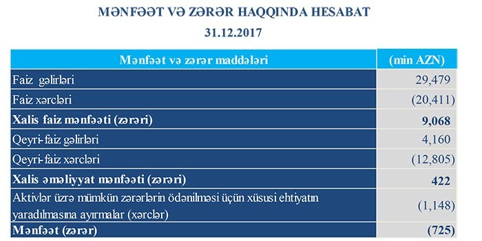 2016-cı illə müqayisədə 2017-ci ildə gəlirlərdə azalma olduğu halda zərərin də azalması, Bankın 2016-cı illə müqayisədə ehtiyatlara daha az vəsait ayırması ilə bağlıdır. 2016-cı ildə ehtiyatlara 4 milyon 25 min manat ayırmış bank, 2017-ci ildə 1 milyon 148 min manat ayırıb.