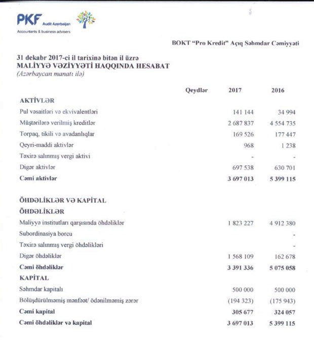 “Pro Kredit BOKT” ASC-nin qeyri-faiz gəlirləri isə 233 min 390 manatdan 5 min 491 manata geriləyib.
