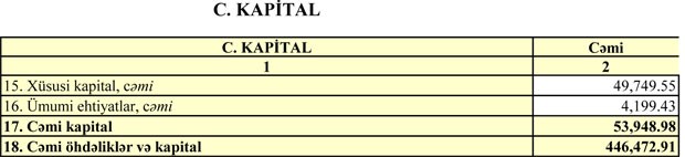 30 İyun 2018-ci il tarixində “Nikoil Bank” 245 milyon manat nizamanmə kapitalına malik olsa da yığılmış 196 milyon 100 min manat zərər qədər nizamnamə kapitalı azalıb və 48 milyon 900 min manata düşüb. 4 milyon 199 min manat ümumi ehtiyatlar ilə birlikdə cəmi (məcmu) kapital 53 milyon 948 min manat təşkil edib.