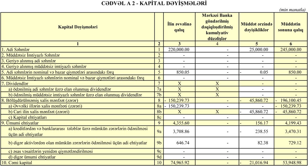 Bu il ərzində müştərilərə verilən kreditlər 291 milyon 46 min manatdan 289 milyon 31 min manata düşüb. Xalis kreditlər isə 218 milyon 94 min manatdan 207 milyon 978 min manata geriləyib.
