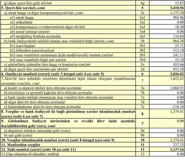 Gəlirlərin artması Bankın əməliyyat mənfəətində də əks olunub. Ötən ilin ilk 6 ayında 2 milyon 804 min manat təşkil etmiş əməliyyat mənfəəti, 2018-ci ilin eyni dövründə 3 milyon 26 min manat olub. Lakin ötən ilin birinci yarısı ilə müqayisədə aktivlər üzrə mümkün zərərlərin ödənilməsi üçün xüsusi ehtiyatın yaradılmasına ayırmalar artdığından xalis mənfəət azalıb. Ehtiyata ayırma 685 min manatdan 1 milyon 652 min manat yüksəlib. Ehtiyatlara ayırmanın artması kreditlər və depzoitlər üzrə itkinin yarana biləcəyi ehtimalının yüksəlməsidir.