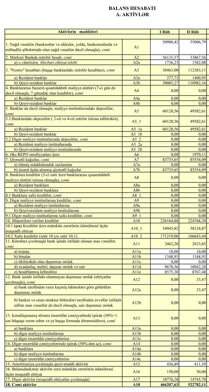 AKTİVLƏR, O CÜMLƏDƏN KREDİTLƏR ARTIB
