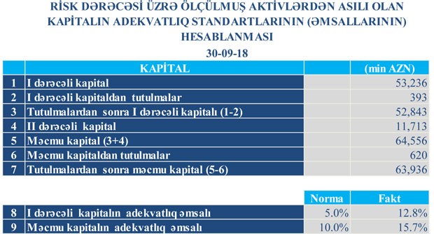 Sentyabrın sonunda “TuranBank” 63 milyon 936 min manat məcmu kapitala malik olub. Bu də minimal tələbdən (50 milyon manat) yüksəkdir.