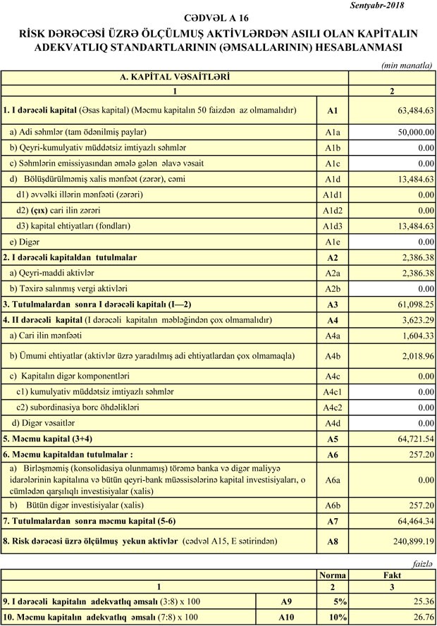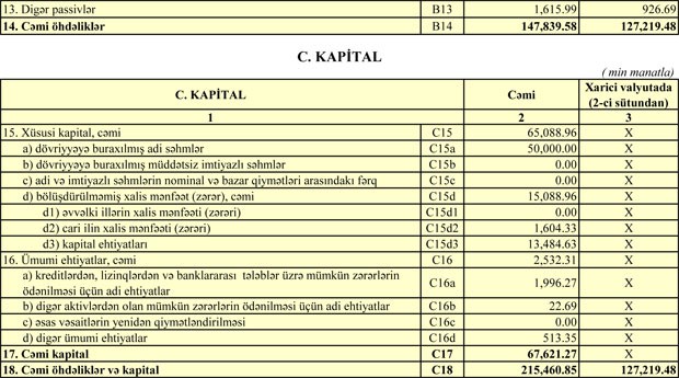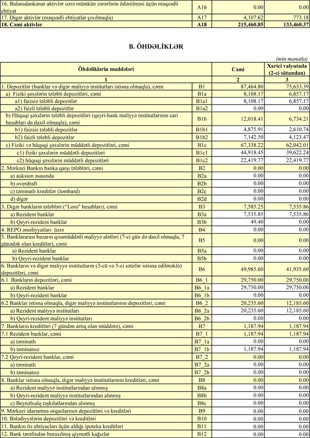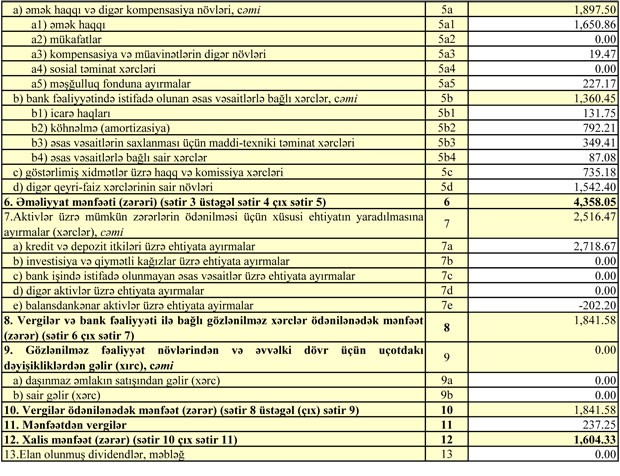Bank 4 milyon 358 min manat əməliyyat mənfəətinin 2 milyon 516 min manatını kredit və depozit itkiləri üzrə ehtiyata ayırıb. Eyni zamanda, Bank 237 min manat mənfəət vergisi ödəyib.