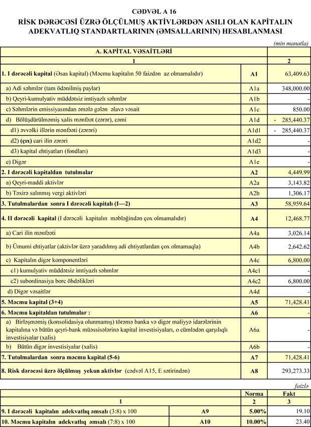 Bankı faiz gəlirləri 16 milyon 537 min manatdan 17 milyon 986 min manata qalxıb.