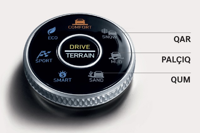 İşlər cətinləşdikdə, QAR, PALCIQ və QUM rejimi muxtəlif nov kobud ərazilərdə optimal təkər cəkməyi təmin edir. Mərkəzi klaster və ya AVN-ə tez bir baxış zamanı ərazi rejimi vəziyyətini təsdiq edəcəkdir.