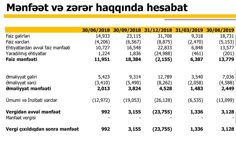"Expressbank" ASC 2019-cu ilin 1-ci yarısını (yanvar-iyun dövrünü) 3 milyon 128 min manat mənfəət ilə başa vurub. Ötən ilin eyni dövrü ilə müqayisədə Bankın mənfəəti 3,1 dəfə artıb. "Expressbank" 2018-ci ilin 1-ci yarısını 992 min manat mənfəətlə bağlamışdı.