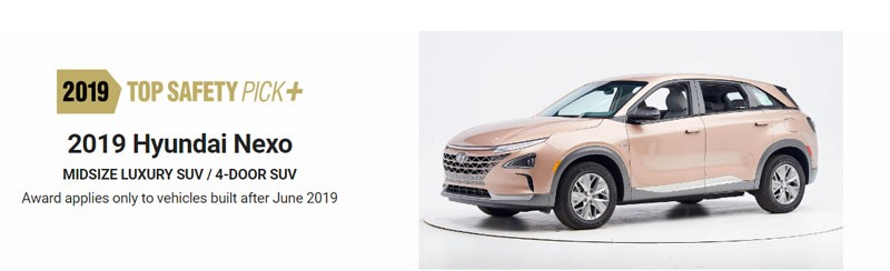TOP SAFETY PICK+ mükafatı hidrogen avtomobilləri sırasında ilk dəfə Hyundai Nexo modelinə verilib.