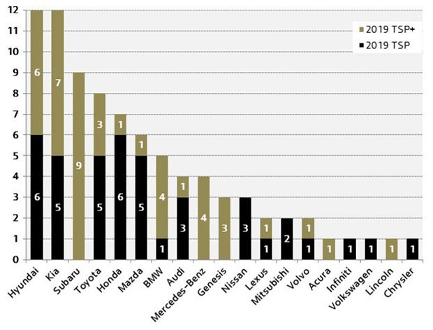 TOP SAFETY PICK+ 2019 mükafatını almaq üçün avtomobilin testlərdə yaxşı reytinq toplaması tələb edilir. Sürücü və sənişinin təhlükəsizliyi nəzərə alınaraq avtomobil ön təfəfdən sürücü və sərnişin, tavan hissədən, yanlardan ümumilkdə isə 6 rakursdan güclü zərbələr aldğı zaman sürcü və sərnişinlərin sağlamlığı üçün minimal zədə göstəriciləri ilə yüksək xallar toplamalıdır.