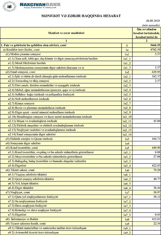 Ötən ilin yanvar-sentyabr dövründə “Naxçıvanbank”ın cəmi gəlirlər 7 milyon 782 min manat, cəmi xərcləri 2 milyon 808 min manat, gəlirlərdən xərclər çıxıldıqdan sonra əməliyyat mənfəəti 4 milyon 974 min manat təşkil etmişdi. “Naxçıvanbank” əməliyyat mənfəətinin 543 min manatını ehtiyatlara ayırdığından ötən ilin 9 ayını 4 milyon 431 min manat xalis mənfəətlə başa vurmuşdu.