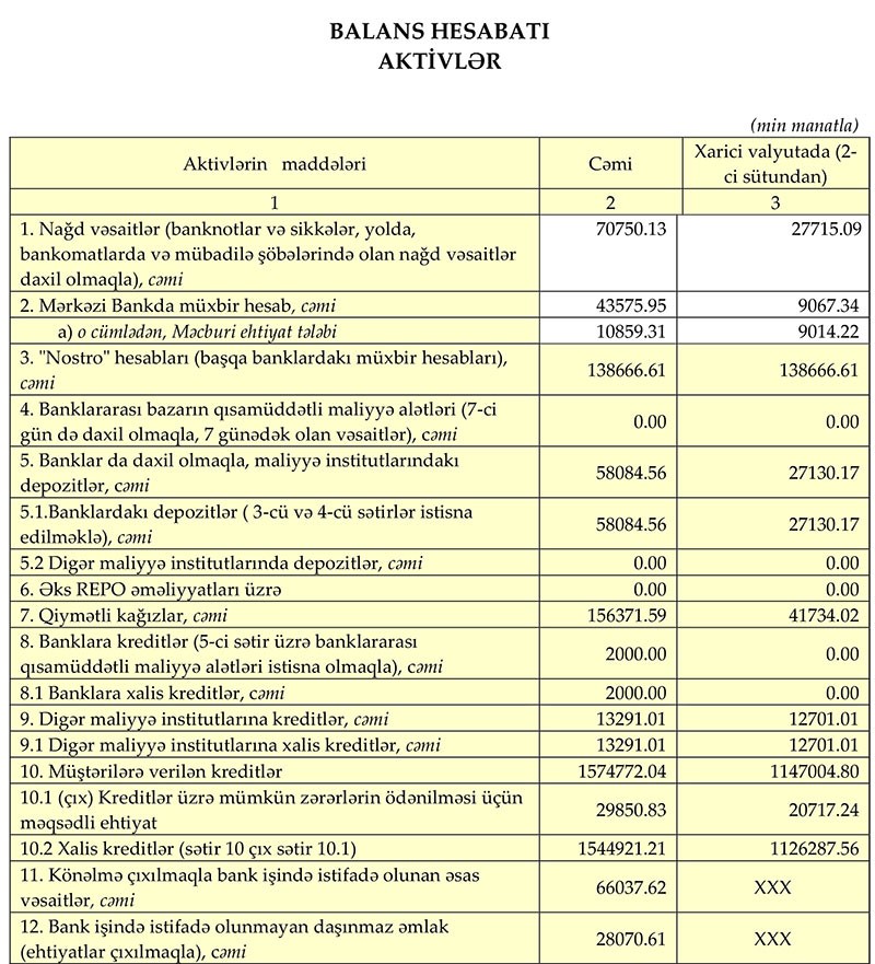 “Qeyd etmək lazımdır ki, bankın maliyyə-təsərrüfat fəaliyyətində müşahidə olunan müsbət trend, əsasən gəlir gətirən aktivlərin diversifikasiyası, yeni müştərilərin cəlb olunması, əməliyyat gəlirlərinin artırılması və xərclərin optimallaşdırılması nəticəsində yaranıb. 2019-cu ilin yanvar-sentyabr dövrü ərzində Bankın faiz gəlirləri ötən ilin anoloji dövrünə nisbətən 366 min manat (0,45%) artaraq 82 milyon 510 min manat, faiz xərcləri isə 3.3 milyon manat (18,84%) azalaraq 14 milyon 210 min manat təşkil edib. Qeyri-faiz gəlirləri isə 9 milyon 990 min manat (251,52%) artaraq 13 milyon 960 min manat, qeyri-faiz xərcləri isə 6 milyon 760 min manat (22%) artaraq 37 milyon 260 min manat təşkil edib.