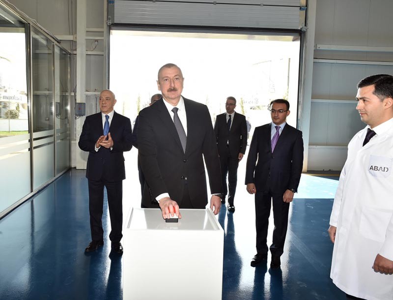 Azərbaycan Prezidenti İlham Əliyev fabriki işə salıb.