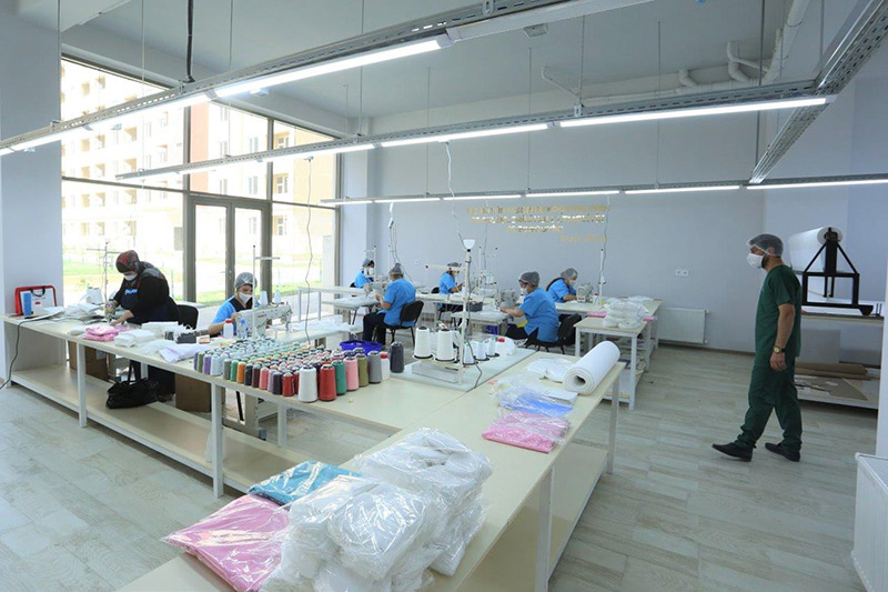 Tibbi ləvazimatların istehsalı müəssisəsində isə gündəlik olaraq 600-700 ədəd tibbi heyət və xəstələr üçün üst geyimləri, 150-200 ədəd steril cərrahi dəstlər, 5000-ə yaxın tibbi maska, 100-150 min arası baxil və digər tibbi tekstil vasitələri istehsal edilir.