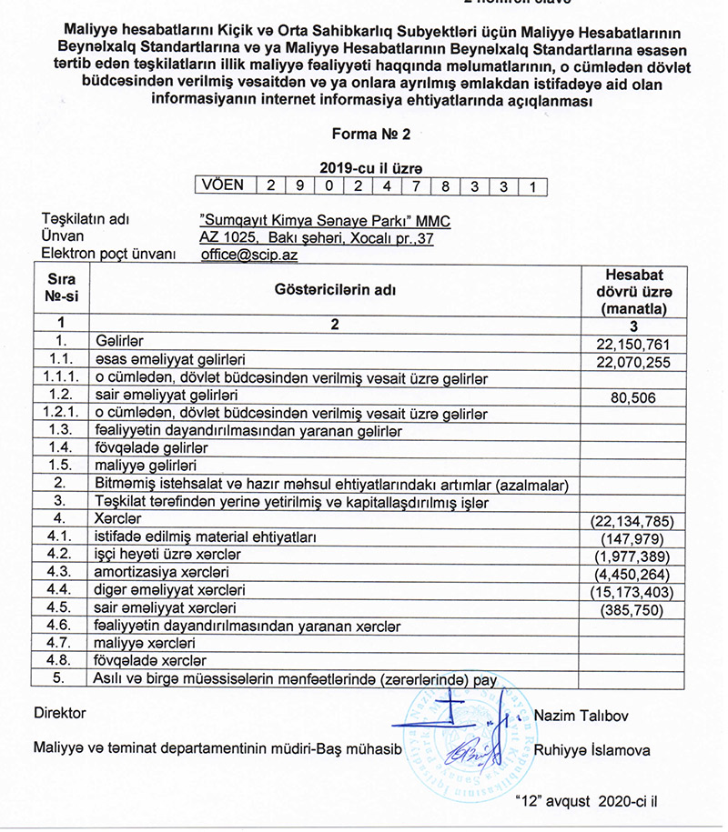 “Sumqayıt Kimya Sənaye Parkı”nın gəlirləri və xərcləri 2 dəfə artıb2019-cu ildə İqtisadiyyat Nazirliyinə məxsus “Sumqayıt Kimya Sənaye Parkı” MMC 22 milyon 151 min manat gəlir əldə edib.