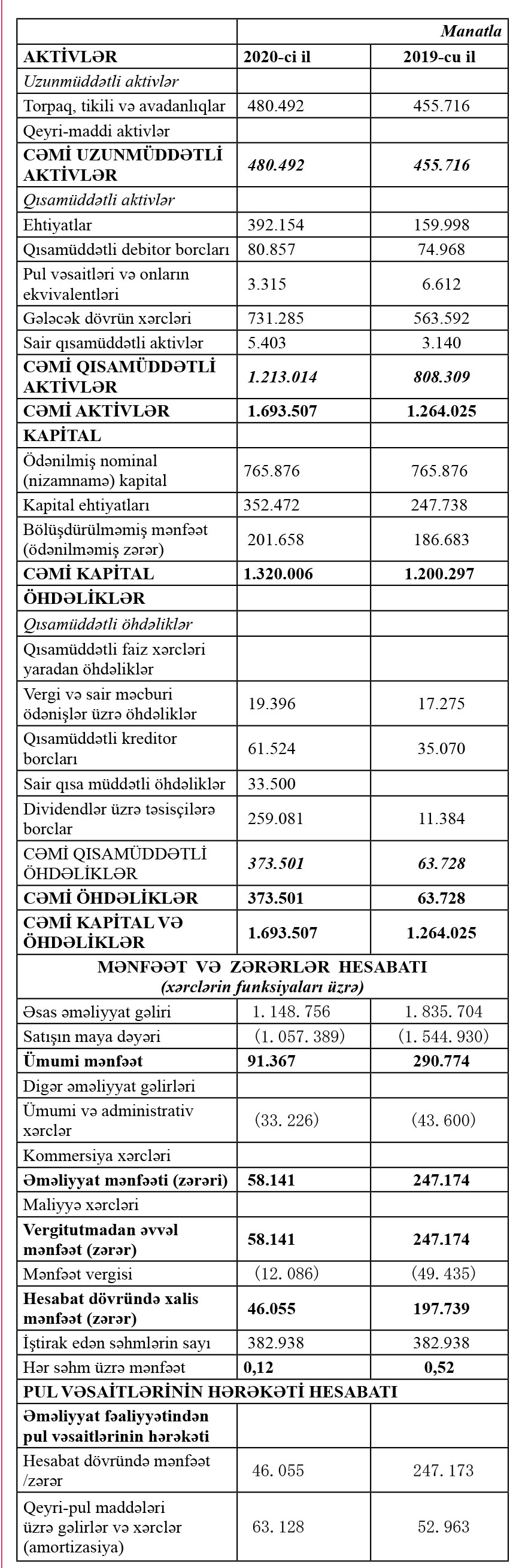 “Bakı Neft Mədən Avadanlıqları”nın gəlirləri və xalis mənfəəti azalıb