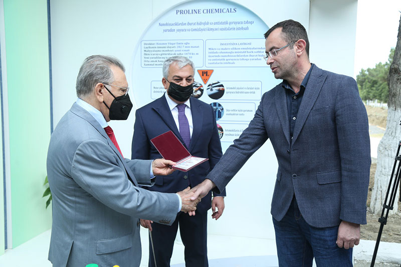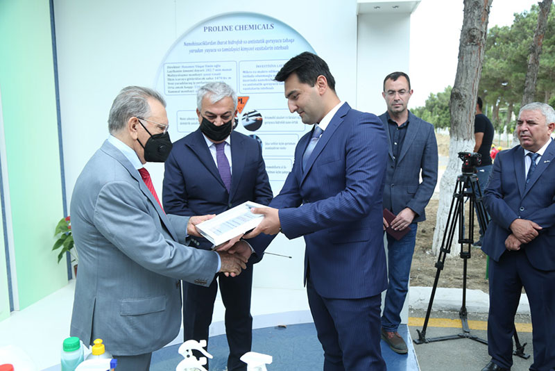Sonra AMEA prezidenti texnoparka yeni rezident kimi qəbul olunmuş “PROLİNE CHEMİCALS” MMC-nin rəhbərinə rezidentlik şəhadətnaməsini təqdim edib və şirkətin məhsulları ilə tanış olub.