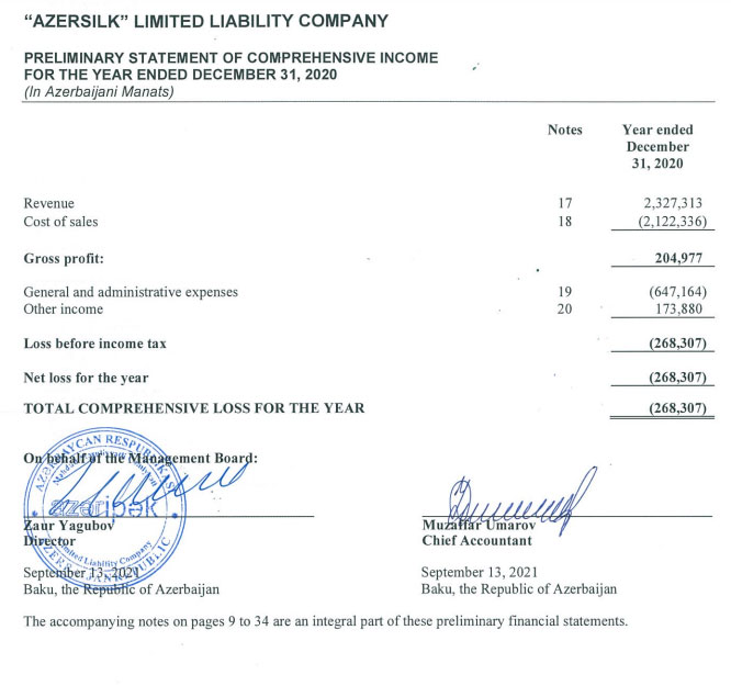 "Azəripək"in 2019-cu ilin sonunda yığılmış zərəri 324 min 887 manat ikən, 2020-ci ilin sonunda 593 min 194 manata çatıb.