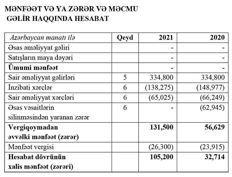 “Bakelektroqaynaq” ASC 2021-ci ili 105 min 200 manat xalis zərər ilə başa vurub. ASC 2020-ci ili 32 min 714 manat xalis zərər ilə bağlamışdı.