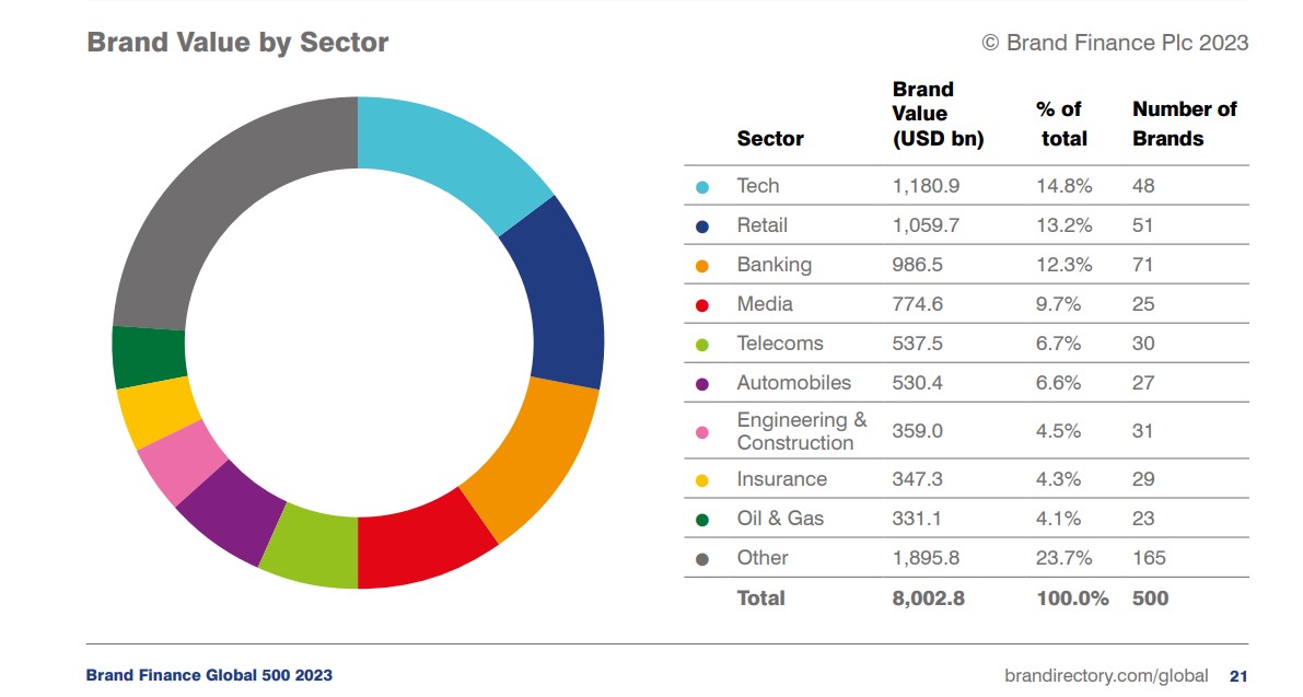 İnstagram (brend dəyəri 42% artaraq 47,4 milyard ABŞ dollarına çatıb) və LinkedIn (brend dəyəri 49% artaraq 15,5 milyard ABŞ dollarına çatıb) texnologiya sektorunda böyüyüb.