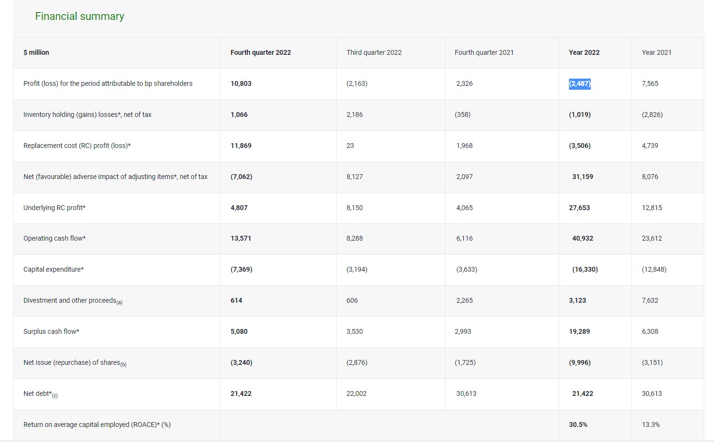 BP-nin 2022-ci ildə 2,5 milyard dollar xalis zərəriBöyük Britaniyanın neft və qaz nəhəngi BP Plc-nin 2022-ci ildə səhmdarlarına aid olan xalis zərəri 2 milyard 487 milyon dollar təşkil edib. Şirkət 2021-ci ili 7 milyard 565 milyon dollar xalis mənfəət ilə bağlamışdı.
